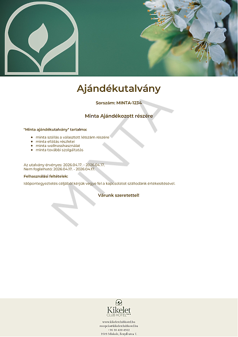 - személyenként egy db 1.500.-Ft értékű MASSZÁZS kedvezmény kupon, mely bármilyen masszázsba beszámítható és igénybe vehető társszállodánkban a Calimbra Wellness és Konferencia Hotel****superior-ban, szabad kapacitások függvényében, előre egyeztetett időpontban - javasoljuk az érkezés napján való egyeztetést,